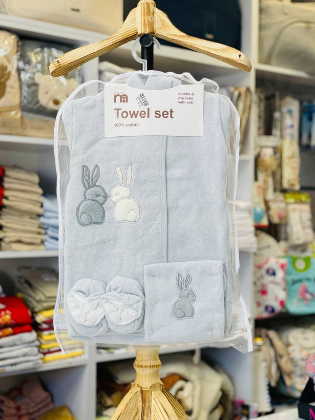 ست حوله نوزاد 5 تکه طرح مادرکر Mothercare شامل 5 تکه ی مهم با طرحی زیبا و شیک برای سیسمونی دختر یا پسر.