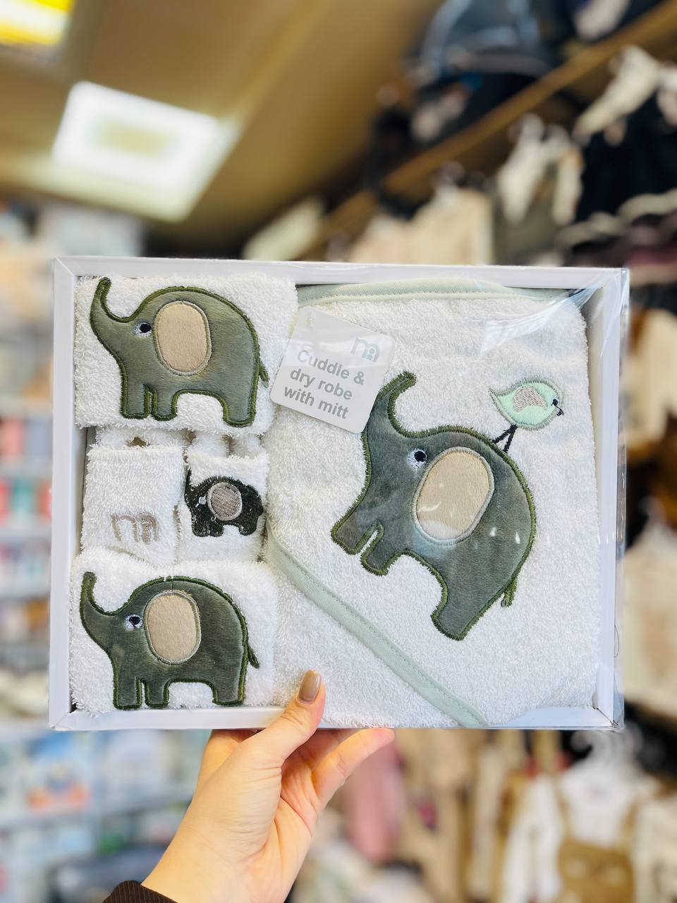 ست حوله ۴ تیکه نوزادی Mothercare انتخابی ایدهآل برای خشک کردن و مراقبت از پوست لطیف نوزاد شماست. این ست با طراحی فانتزی و دوخت باکیفیت، هم کاربردی است و هم بسیار زیبا و مناسب سیسمونی.